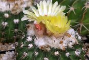Высота некрупных Acanthocalycium ferrarii в природе достигает 20 см, кактусов шаровидный стебель достигает 12 см в диаметре. До 18 ребер, 9 загнутых к стеблю радиальных колючек длиной до 2 см; 1-4 центральные колючки, до 1,5 см, желтые с более...>>> |